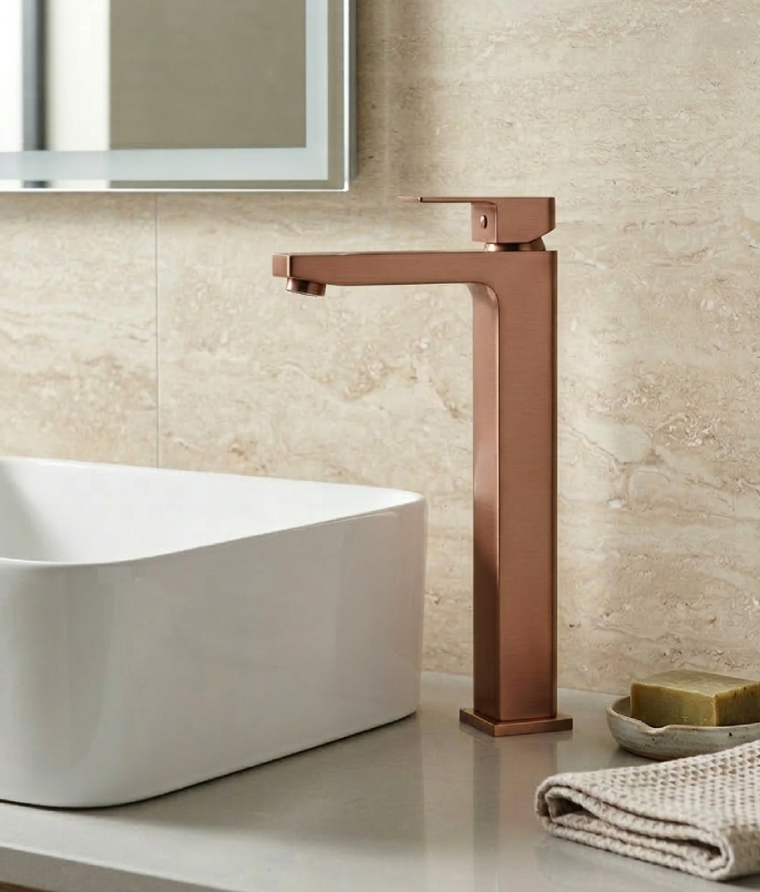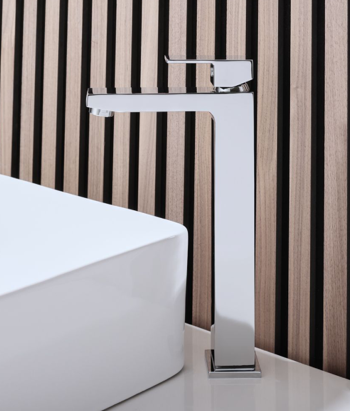 Make a bold statement with this high-neck square basin mixer, designed for modern bathrooms and countertop basins. Its geometric form and sharp, defined edges create a striking architectural presence, perfectly suited to contemporary and minimalist spaces.
