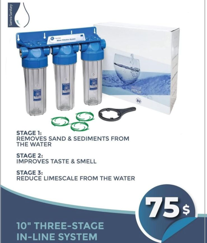 Water filter that removes sand, limescale, bad taste, and odor. Easy to install and provides cleaner, fresher water for daily use.